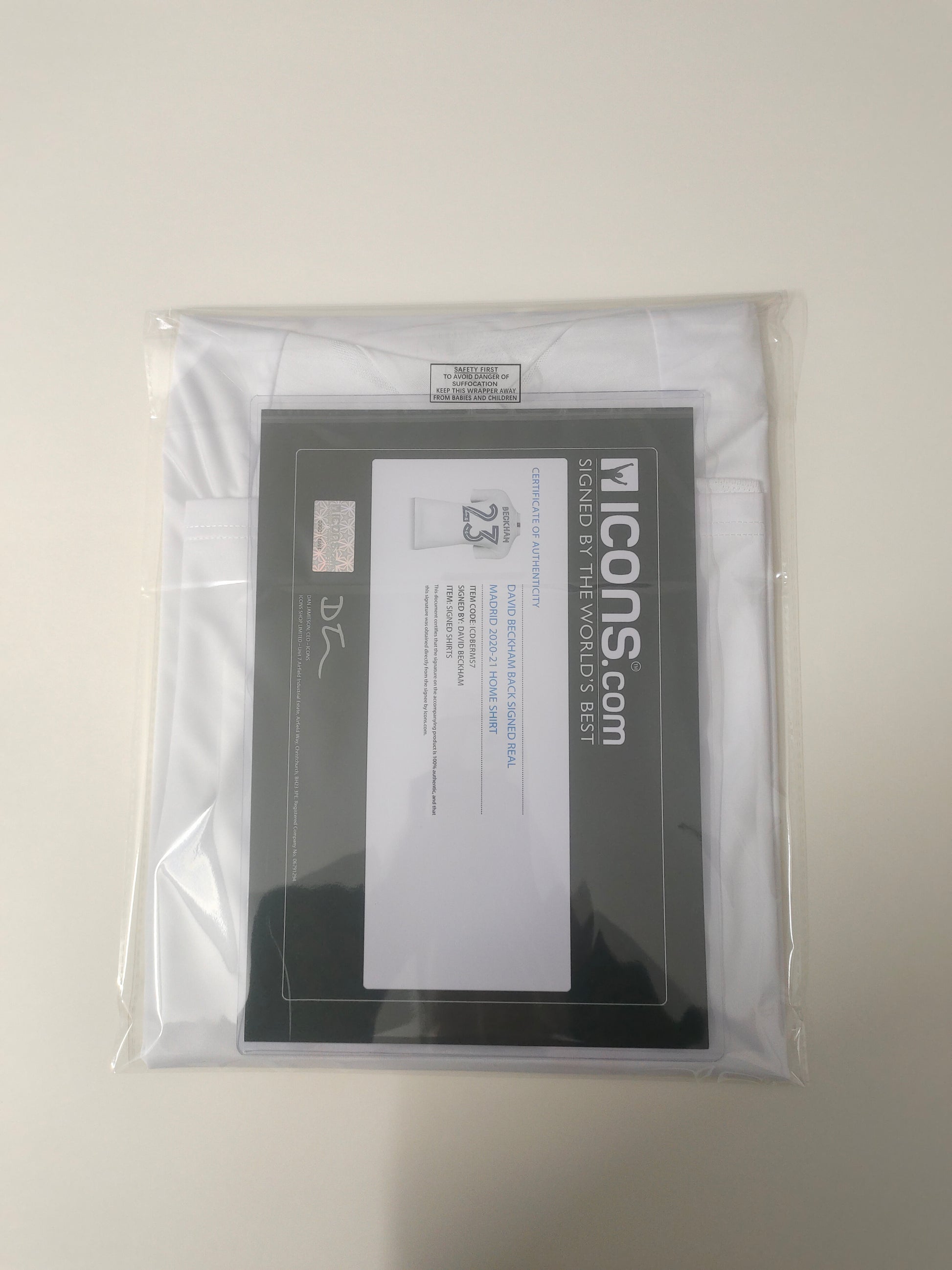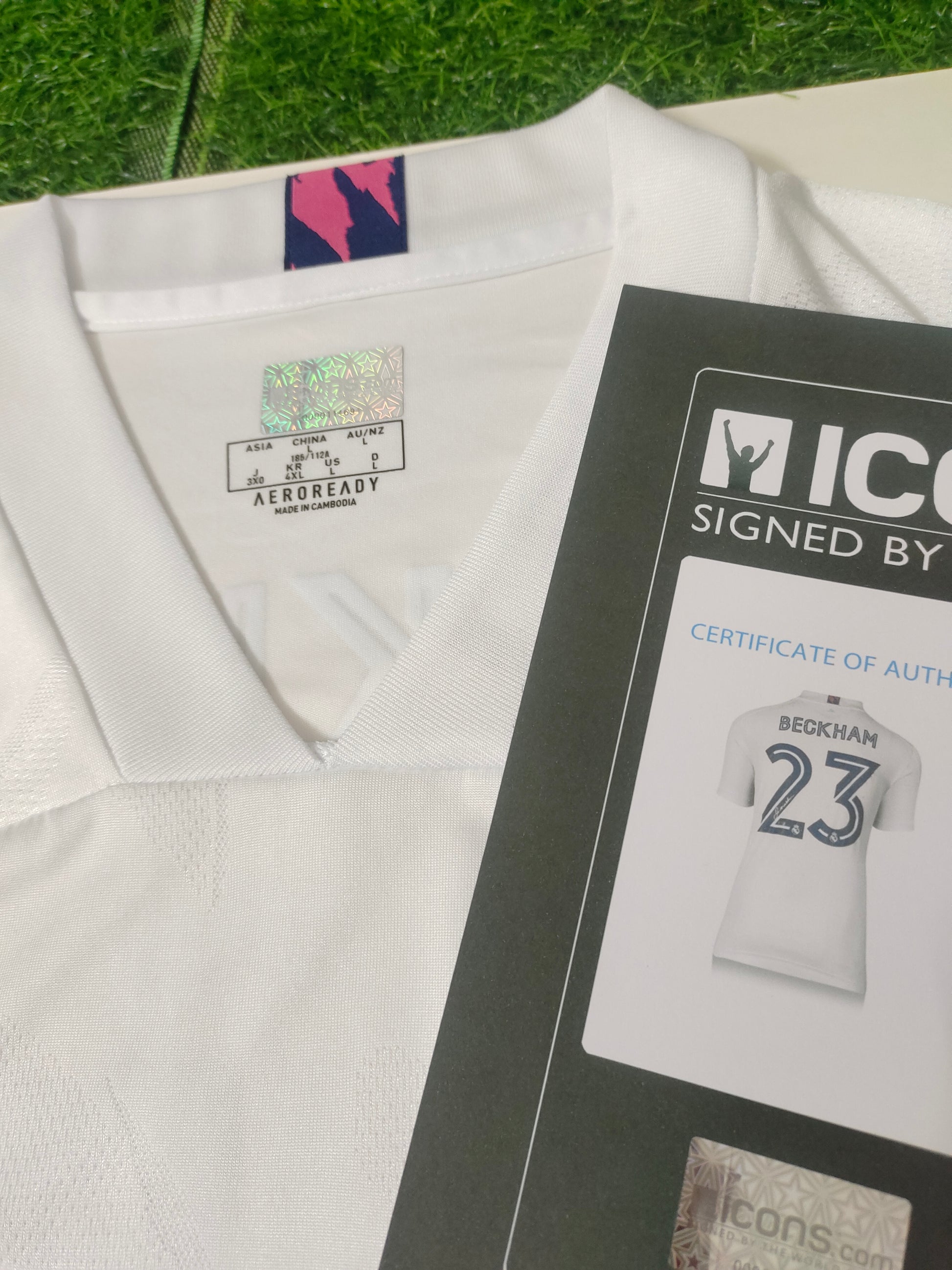 Includes David Beckham's handwritten signature and ICONS certification.