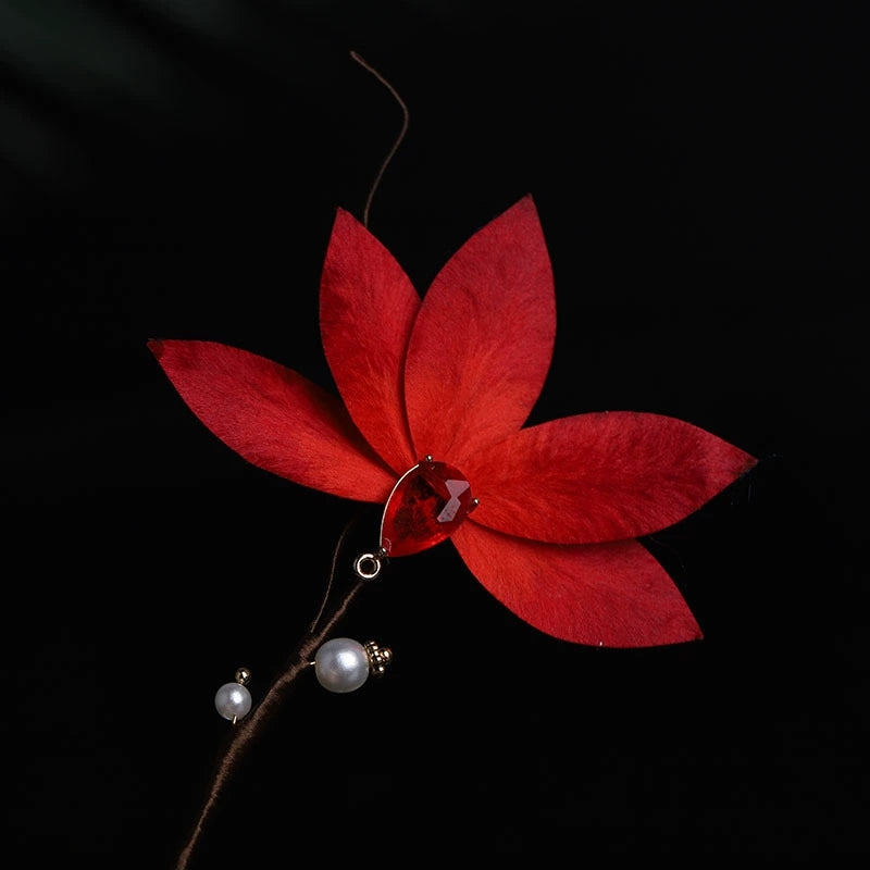 This "Scarlet Lotus" ronghua soft hairpin is purely handcrafted with ancient techniques. Each piece takes several days to make and remains ever-blooming. Made from pure natural silk threads, it’s a classical hair accessory for Hanfu lovers and a Traditional Culture Gift. Worn in the hair, it’s like capturing the gentleness of scarlet lotuses in ancient paintings, retro and elegant, infusing traditional Chinese charm into your look